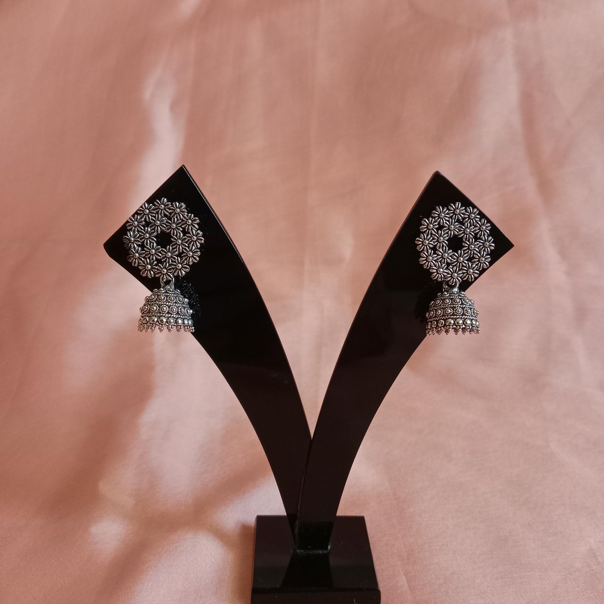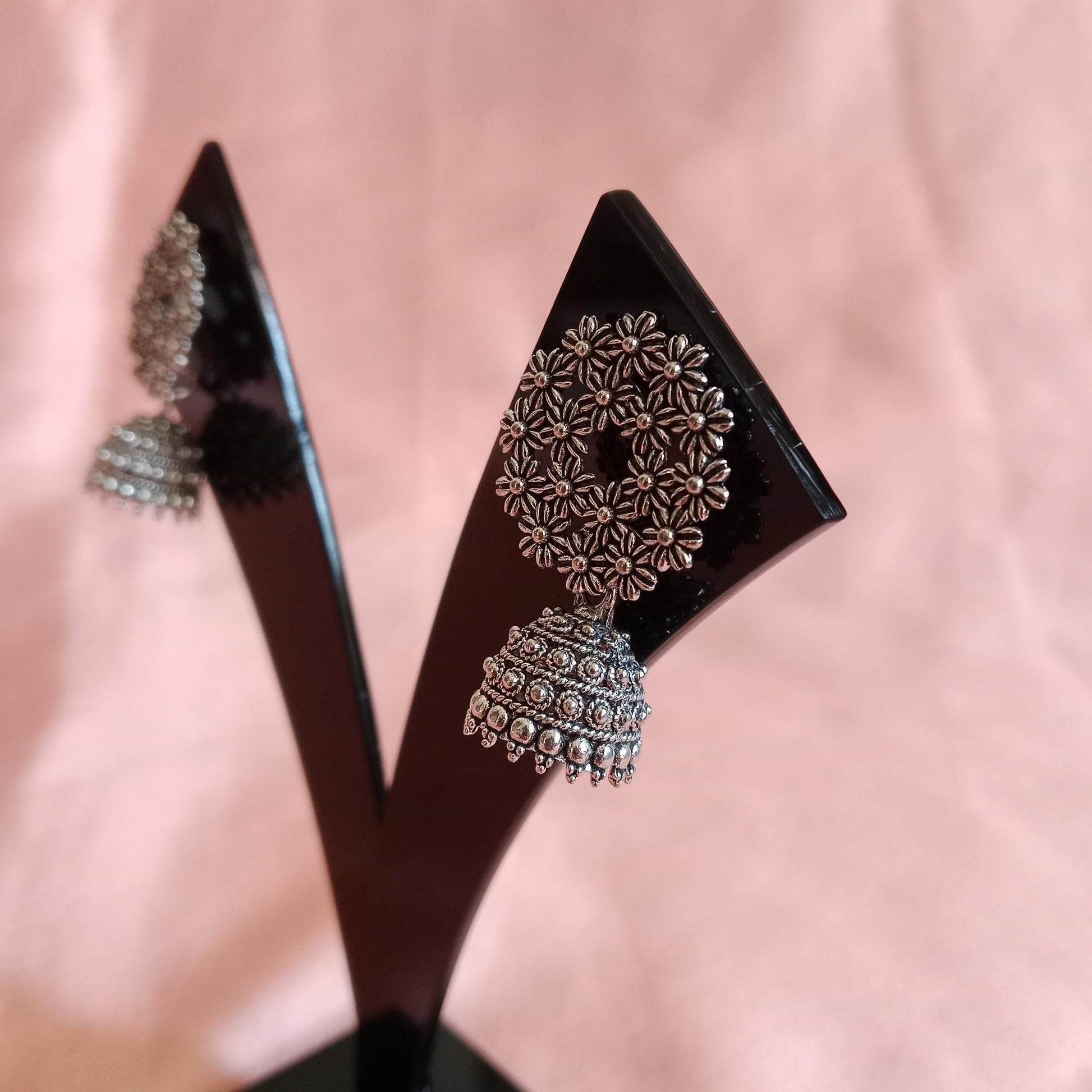 🛕 Floral Cluster Oxidized Jhumka – Lightweight, Skin‑Friendly Earrings